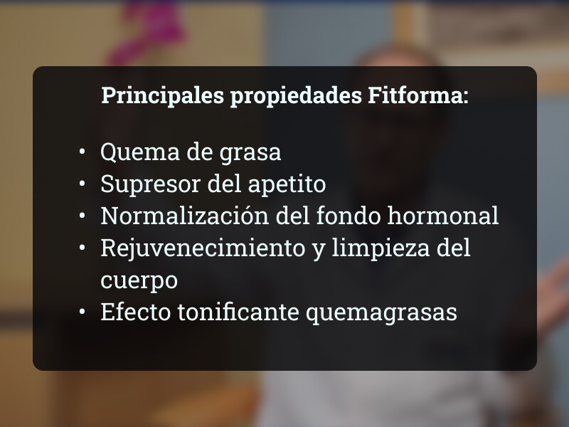 Se ha demostrado que Fitforma tiene un poderoso efecto sobre la aceleración del metabolismo y la quema de masa grasa. Está indicado para el uso de personas con sobrepeso, personas con metabolismo alterado y diabetes mellitus.